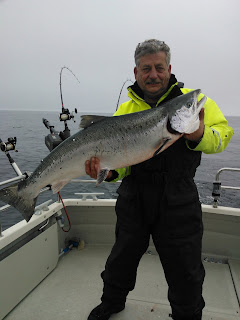 En stor udsætter hanfisk som vejede 14,90 kg på den godkendte vægt med vidner fra Team Nielsen som også havde en god dag med fine fisk, Den tog i 75 fod på Ismo magnum blink og gik straks 850 fod imens vi riggede af. Det er nu skønt når ens hjul bliver næsten tømt i et hug…..