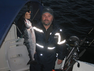 Var en tur ved Stablen. Satte grejet i vandet, sejlede ca. 15 min, da hjulet bare hvinede. Laksen tog 300 fod da den kom ud af vandet. Så fin ud , men sprang igen – og var væk. Satte grejet ud igen , sejlede ca 1 time og der var bid. En laks på 4,2 kg kom i båden.