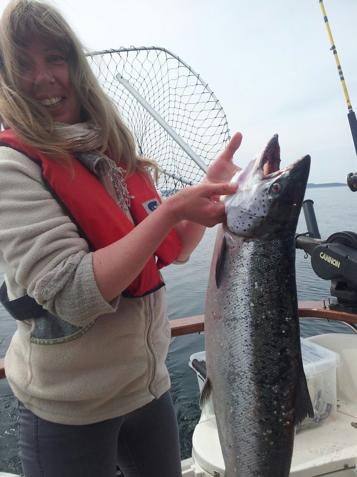 Jeg vil Tilegne den første Laks i egen båd til BTK, Bill for den dejlige modtagelse i November og intro til BTK, Murebaljen og Kim , Ulrik, Teddy, Jan komnitz, jam alle fra klubben for motiverende timer på havet og øjeblikke hvor min Laksefeber er blevet noget bedre tunet ind. Min Kæreste Christina og jeg skulle blot en tur på havet for at nyde lidt havblik , hjemmebag og en go kaffe her til formiddag. Da båden lige mangler og få sat ledninger til Downriggerne havde jeg blot sat en Sideplaner i begge sider og en Deepseadiver da laksen huggede på siden. Havde nær fået hjemmebagen galt i halsen. Christina udbrød mindst to gange hold kæft en stor laks og pas nu på mm og var lidt panisk. 🙂 . Så nu er hun også godt Hook på at lære det. Godt 9.0 kg. Endnu engang tak til alle involverede.