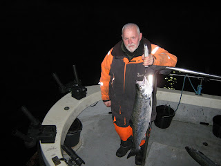 Her sender vi billeder af 2 laks, som er fanget den 27.02.09. Begge laks blev fanget ca. 1.5 sømil ud for Kunstmuseet. Vi havde været nede ved Gudhjem, og havde kun fanget en enkel torsk. Så vendte vi om og sejlede atter mod Tejn, og ud for Kunstmuseet fik vi hug. Det viste sig at være en flot skinnende laks på 5.5 kg. Vi vendte båden og prøvede at sejle tilbage, og minsanten om vi ikke fik endnu et hug. Denne gang var det en ligeså flot laks på 8.5 kg.