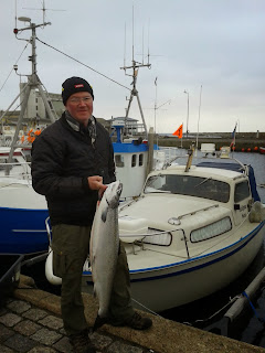 Fredag d. 1. november ville jeg bare ud og fiske det, vejret var ikke for godt næsten 10 m/sek. men det skulle jo prøves vinden kom fra SV så det var lige ud til 50 m kurven og sætte grejet, kursen mod nord og to drivankre så gik det rimeligt. Efter 1 times tid blev bølgerne støre så jeg besluttede at trække grejet ud for Stablen, da jeg tog den sidste stang på 120 fod kom hugget på en kobber Ismo det var en laks på 7,7 kg . 93 cm .