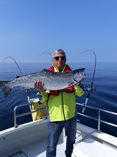 En dejlig tur med Lejf den 12./5 med udgangspunkt fra Hammerhavn gav denne dejlige laksebasse til mig.