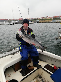 tog en eftermiddagstur, (torsdag/ fredag?) mistede først en på snigeren, som filtrede 2paravaner sammen sejlede mod havnen og havde bjerget det meste grej satte lidt mere fart på båden så løb paravanen lidt ud jeg troede at det bare var fordi jeg sejlede hurtigere tog så sidste paravan ind fik taget den af ,kunde godt se at der var noget på når den kom ind til båden kom der liv i den 7,36kg og 92 cm hilsen holger på toan