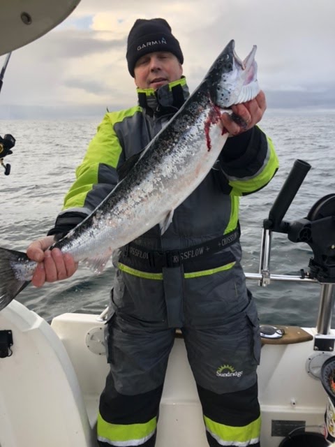 Blogfisk Lillefod havde besøg af Jesper Schøitt på turen, vi var i området Albuen. Mistede først en fisk og lige efter kom der et dobbelt hug..begge blev landet.. på billedet ses en fin laks på 5.7 kg og 85 cm. Taget på sniger Toby svensker Hilsen Preben Finne