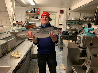 Endnu en dejlig dag på havet i rigtig laksevejr. Det blev til i alt 3 fisk. En fin havørred på 3,6 kg tog først på paravanen. Kort efter udløste den dybeste på riggen, hvor det blev til denne laks på 5,5 kg og 78 cm. Fisker: Jens Ipsen