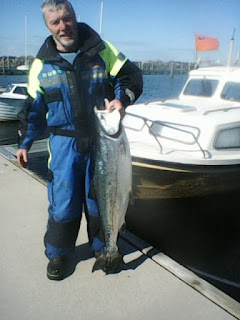 tog ud kl 9 for at se om der var laks ud for rønne det var det kl 14 fik jeg en god fisk på brisling sideplaner 13.445kg 105cm ca samme sted som jeg fik den anden 13kg for 14 dage siden har mistet 4 fisk i mellem tiden hilsen holger på toan