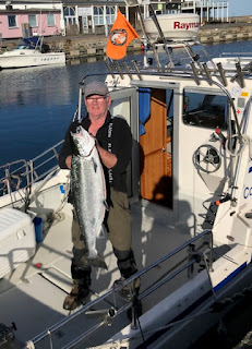 Jeg fik hug på den ene sideplaner,da det virkede til at være en god fisk og det blæste op,besluttede jeg at tage alt grej ind,men fisken stod af,så da jeg skulle til at sejle hjemover,kan jeg pludselig høre en bremse der hviner,jeg havde ikke fået taget snigeren ind,så det var bare at tage stangen og figthe fra drivende båd. Fedt
