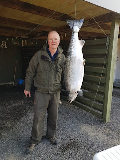 Laksen vejede 15,64 kg og den var 114 cm. Kontrol vejret af Leif.
